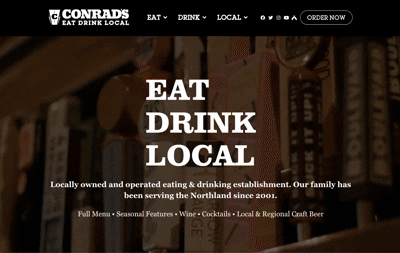 A modern WordPress website for CONRAD’S – Eat Drink Local, a restaurant based in Kearney, Missouri, USA. Developed through ShoutCloud Studios, the site showcases their full menu and dining details. I designed, developed, and continue to maintain the website to ensure optimal performance and user experience.